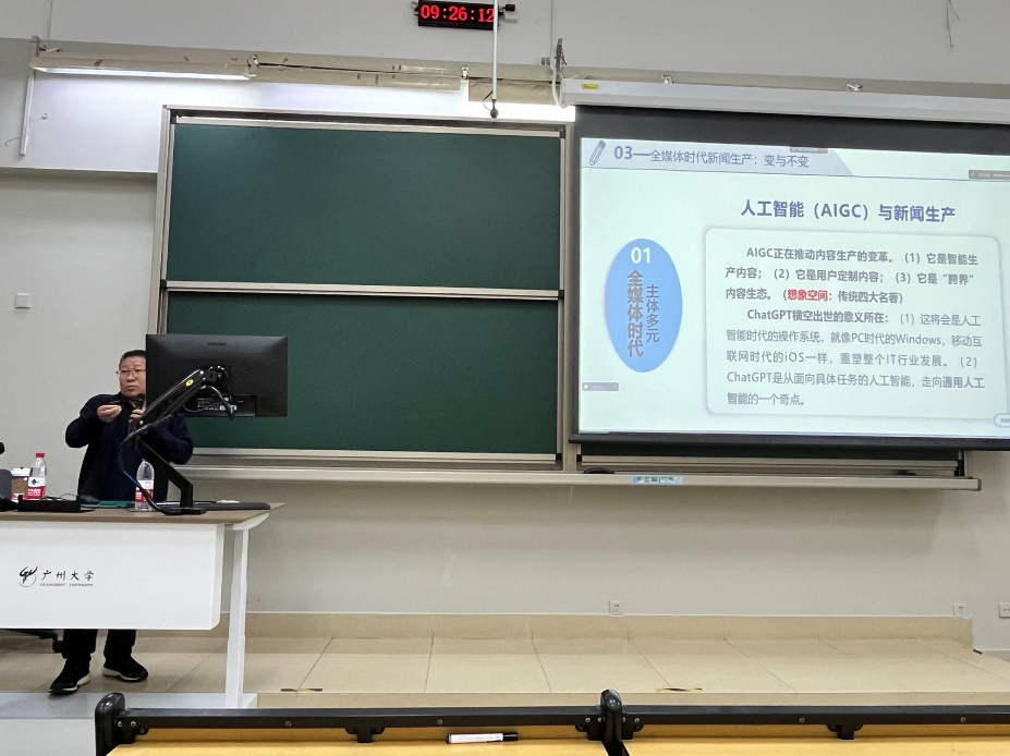 为提高学生的媒体素养和新闻采编能力,帮助学生更好地理解当下的媒介环境,12月1日,“媒体人进课堂”系列讲座邀请了广州日报全编中心报纸编辑部副主任毛玉西,为学生们带来了题为《全媒体时代新闻生产的变与不变》的讲座。本次讲座由做爱自拍