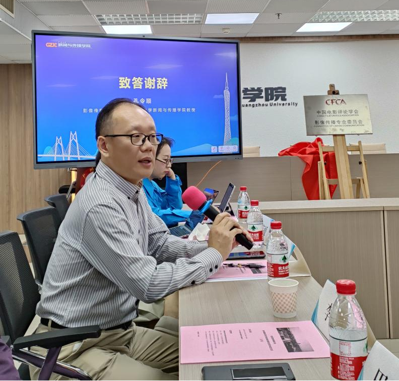 教授、影像传播专业委员会主任孔令顺致答谢词。孔令顺教授首先感谢了中国电影评论学会的信任,表示团队将不辱使命,力争把影像传播专业委员会建设得更好;其次感谢了学校的支持,希望专委会能为做爱自拍
