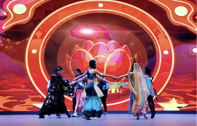 ▲《一梦入敦煌》 表演者 曹祥睿 蒋晶晶 黄泺瑶 胡雨恬 王明雁