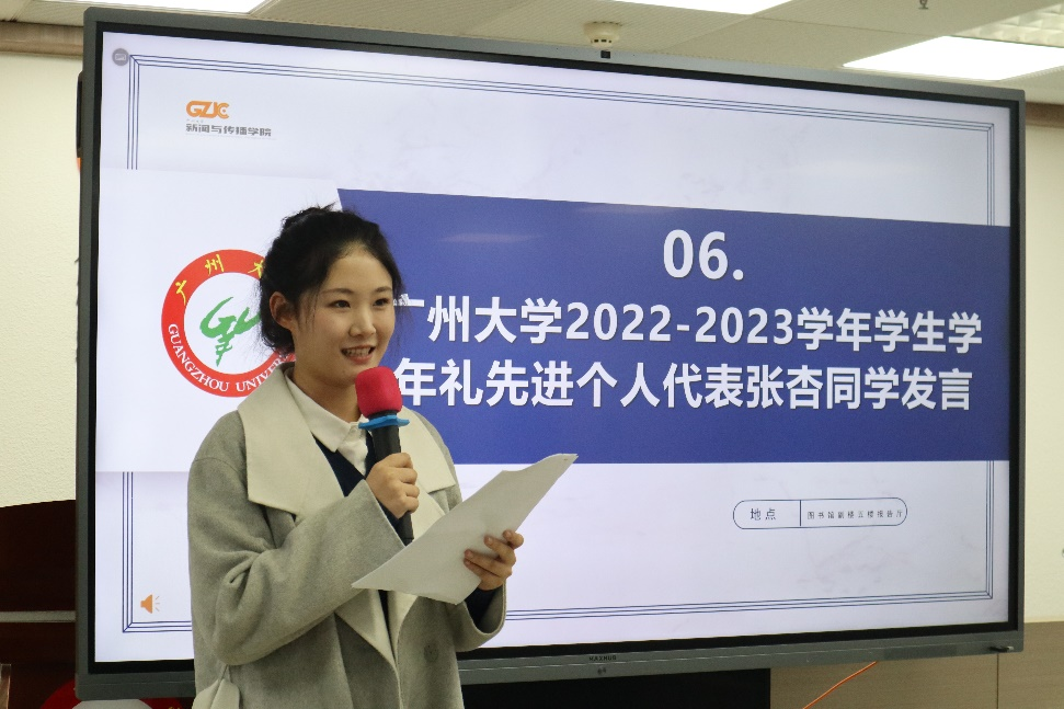共青团第四次代表大会、“三下乡”暑期社会实践等等实践活动之外,她也没有放松自己的学业成绩,在课余时间也会阅读书籍,拓宽自己的知识面。最后,她表示,作为一名合格的新闻人,一名合格的中共预备党员,不仅是党的喉舌,更是党的储备军,她将用自己所学、青年热血为实现中华民族伟大复兴贡献自己的力量。