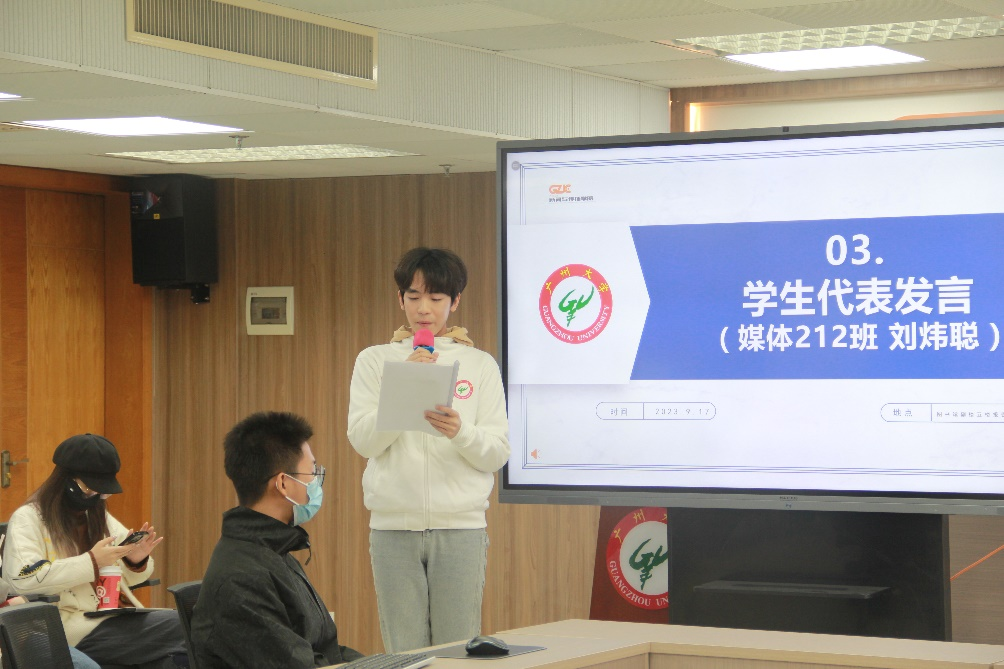 在文逸楼608举办以“学身边榜样•筑广大底色”为主题的2023-2024学年学生学年礼学生成长发展主题系列活动。本次会议由邹演枚老师主持,学生处领导、第二校园访学团全体成员、学院各班师生代表参加了此次会议。