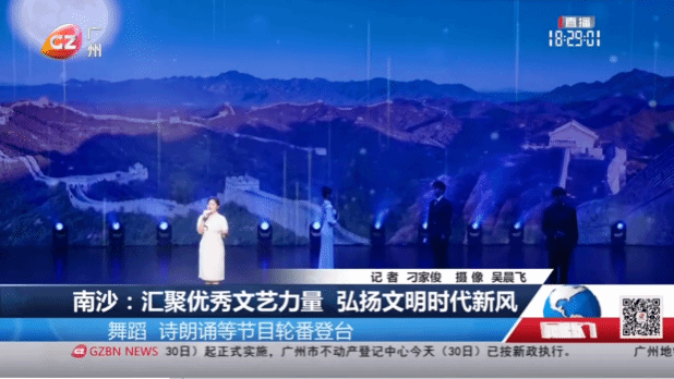 许莹冰老师指导,播音与主持艺术专业申欣悦、邓颖茵、戴昨非、曾施浩朗诵的节目《月光下的中国》受南沙区语言艺术协会邀请参加本次活动。