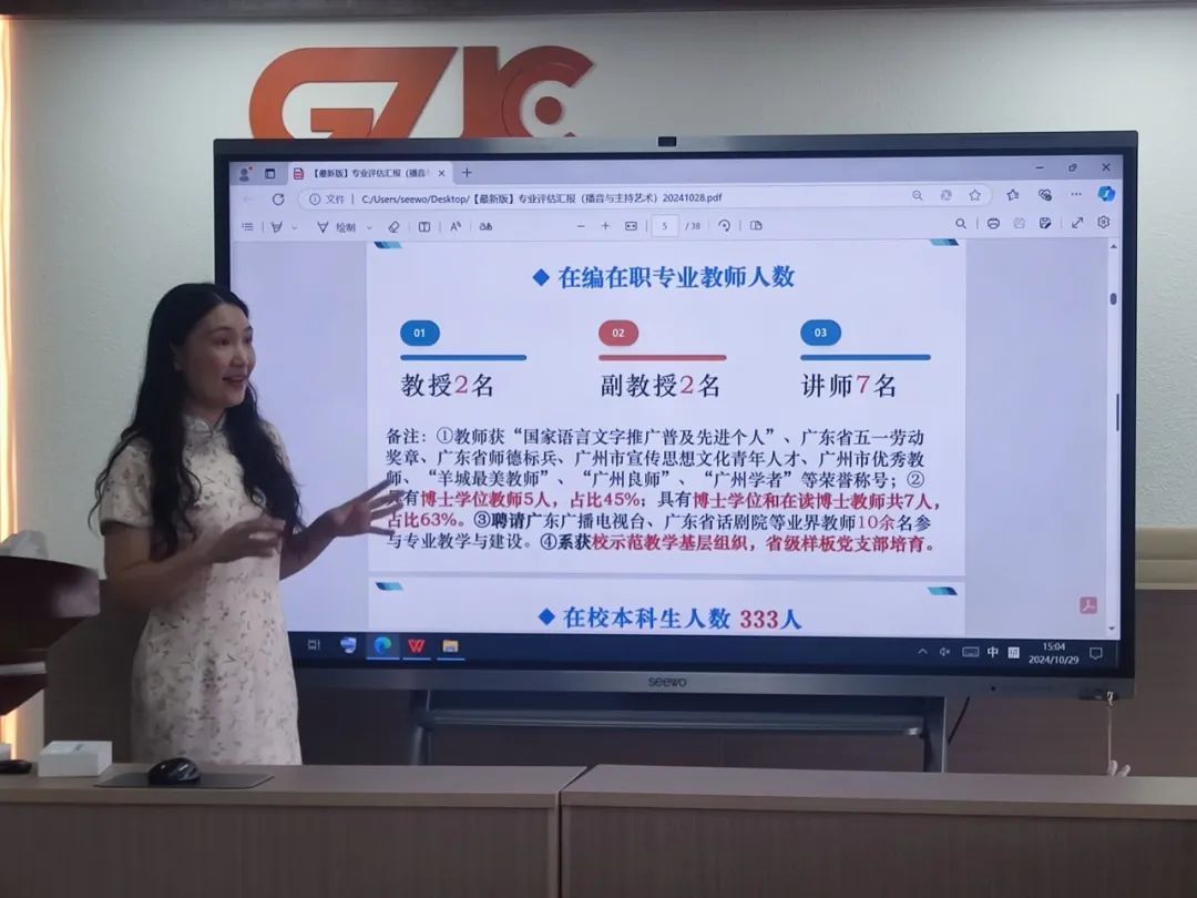 ▲彭雨晴老师介绍播音与主持艺术专业发展历程