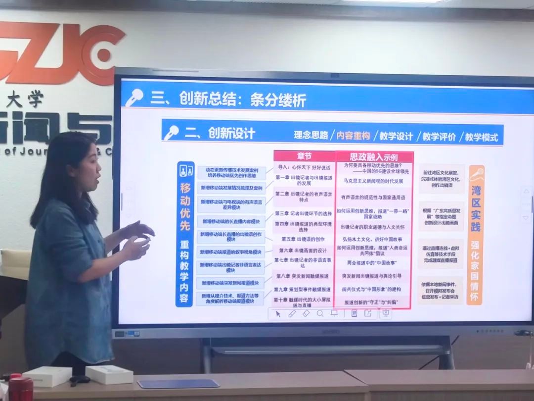 第三届广东省高校教师创新大赛一等奖、国赛三等奖获得者曾岑老师分享了参赛经验,提出将思政元素融入课程建设的多元创新路径,帮助学生形成正确的世界观、人生观和价值观。