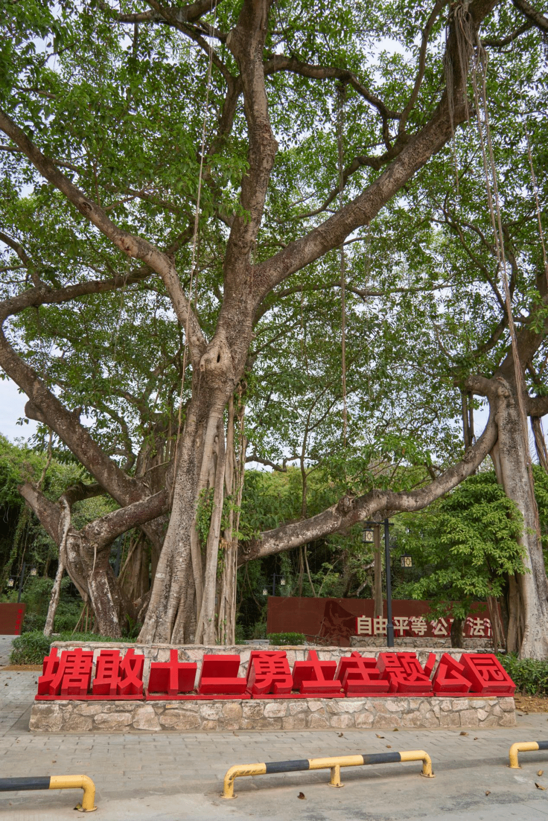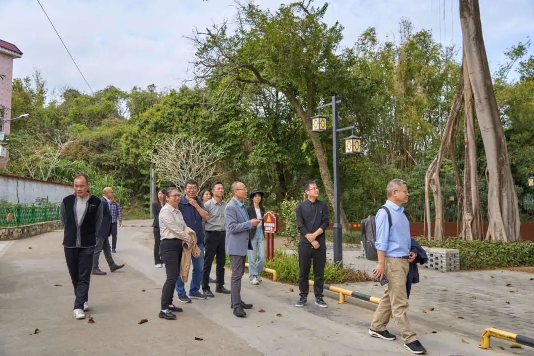 一行参观了塘敢村的村居、农场和文化设施。塘敢村党总支书记黄振帮带领大家参观了十二勇士公园,并进行了讲解。