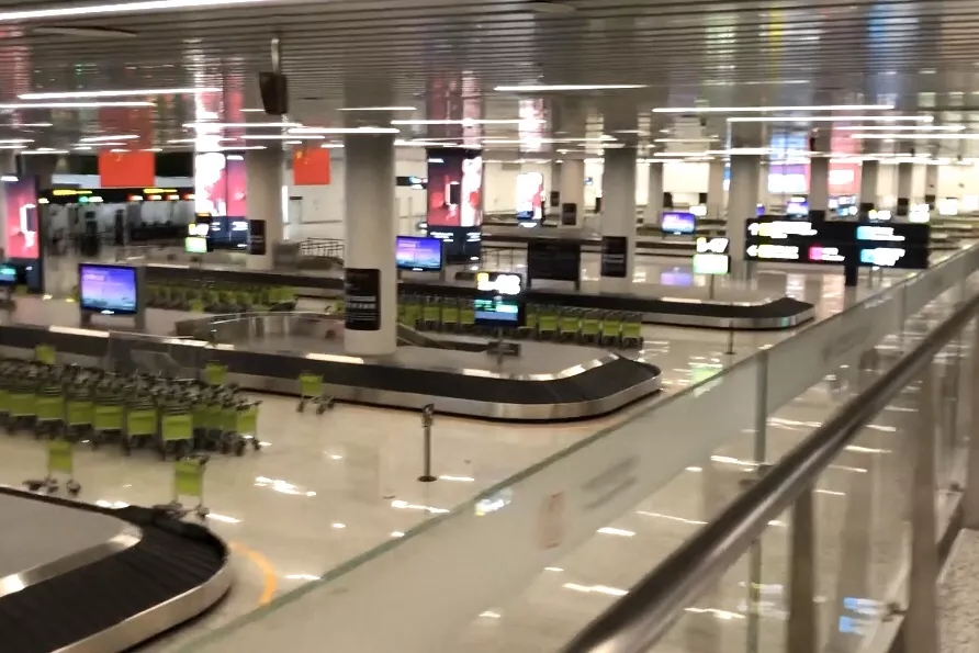 到达机场,随眼可见的是包裹着防护服带着笨重行李步履匆匆的人们。陈梓瞬时感受到与往日不同的严肃感,她不禁压紧了自己的口罩。