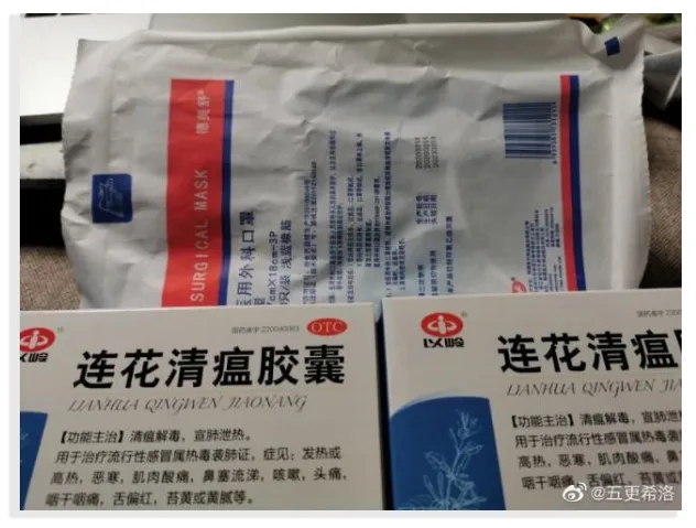 由于是疫情期间,博主和舍友不敢随意外出走动,所以“健康包”是在舍友遛狗的时候领取的。博主领取到的“健康包”包括10个三层外科口罩和2盒连花清瘟胶囊。