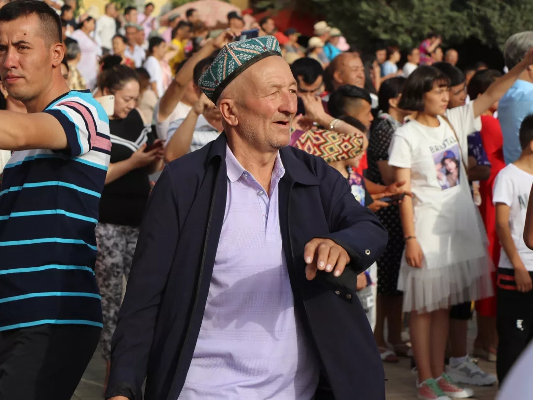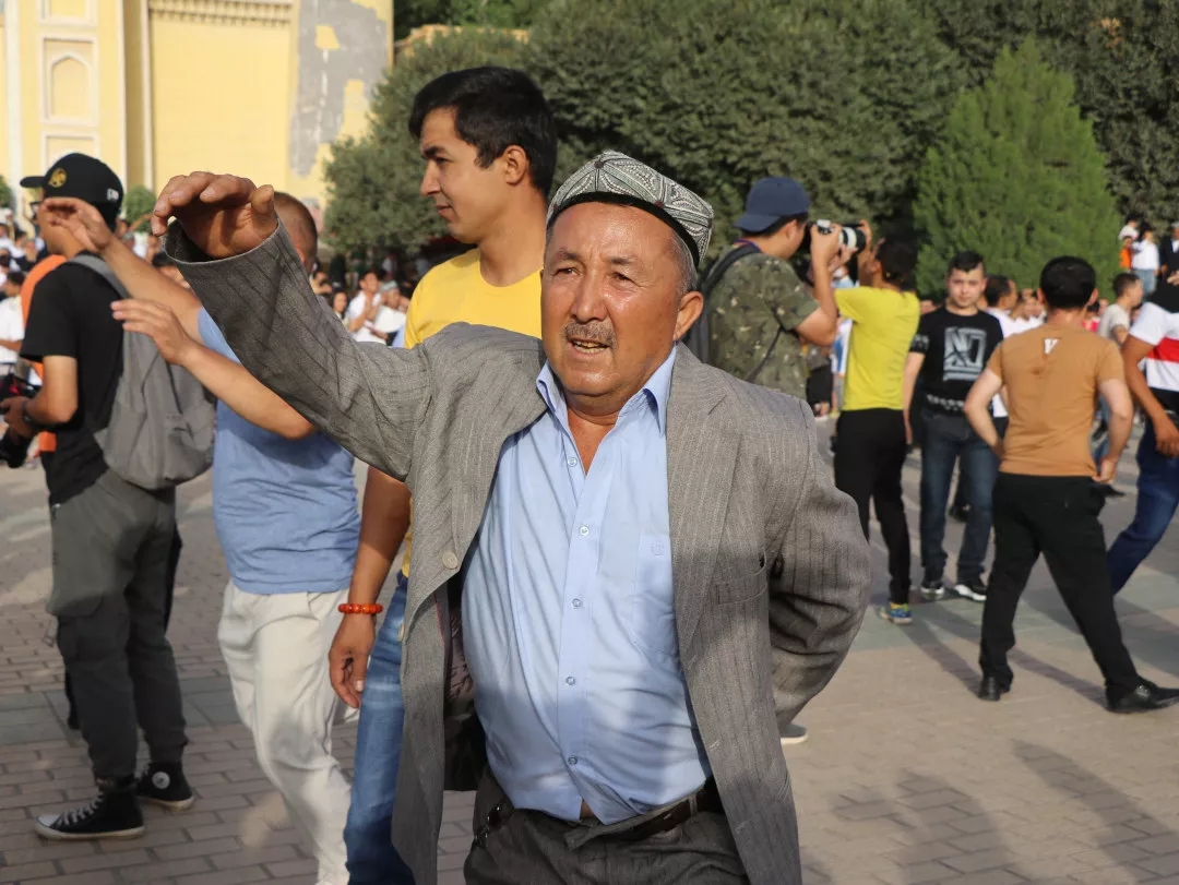 实践队员抵达喀什的第一天,恰逢当地群众一年当中最重要的传统年节——古尔邦节。上午10点清真寺内的仪式结束后,乐师们便登上艾提尕尔清真寺顶,奏响极富民族风情的乐曲,当地群众在轻松活泼的曲调里跳起民族舞蹈。起先是稍微年长者围起小圈,渐渐的加入舞蹈的人越来越多,圈子逐渐扩大,甚至连孩童都加入进去。也许是受到热闹气氛的感染以及当地同胞热情好客的邀请,在当地群众的引领下,一些游客卸下了自己羞涩,加入到舞蹈中去。正如“艾提尕尔”在维语中表示“节日欢乐的广场”一样,在节日的盛况中,人们尽情的融入欢乐的海洋。