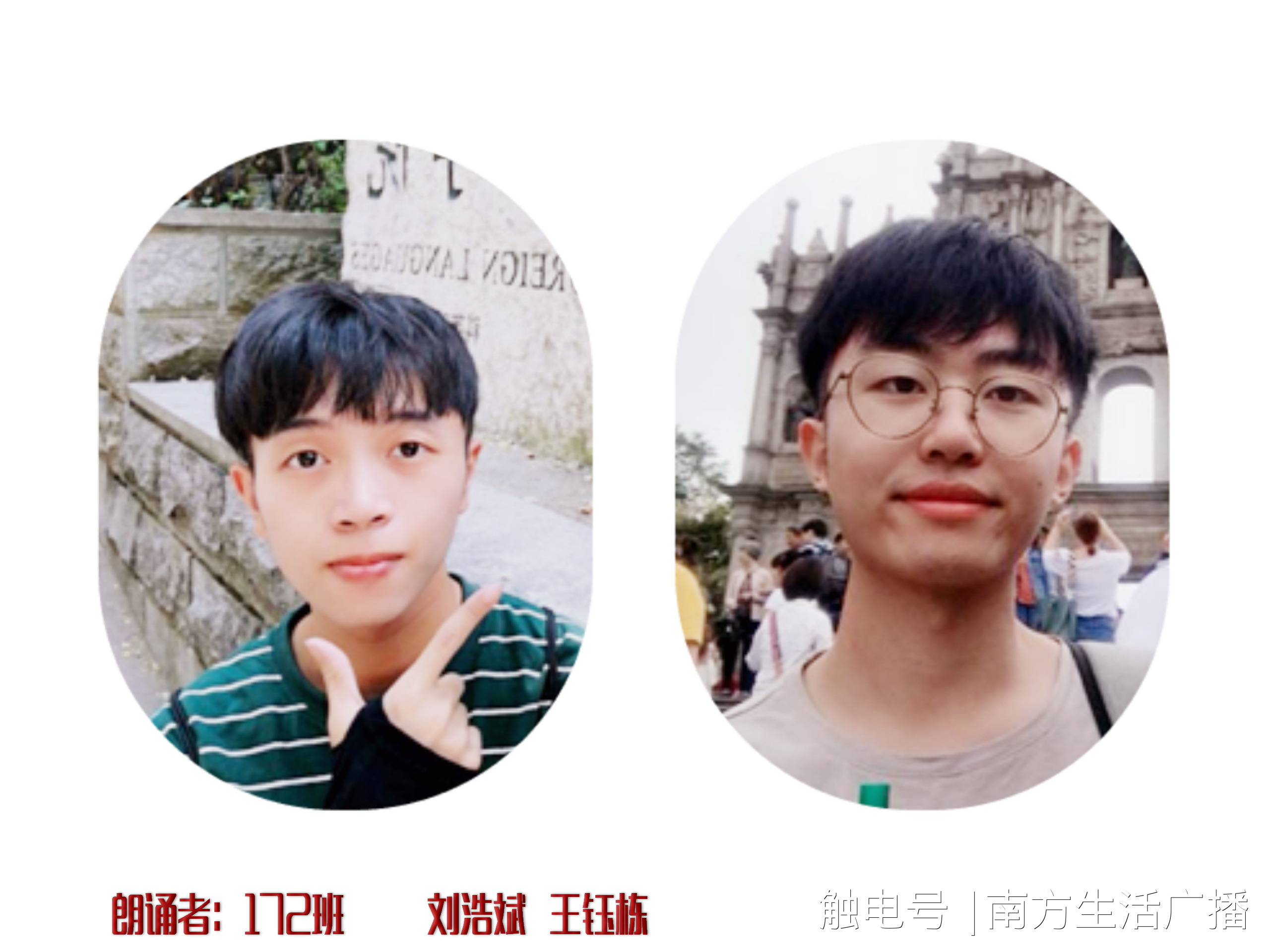 朗诵者:黄雪慧 张菀文 曾展涛 蔡彦栩 陈开鹏 邓田丰 廖雯禧 黄昊竣 刘振涛 张弛 李慧 伍浠敏 雷烨彤 商力 钟浩良 陈振宇