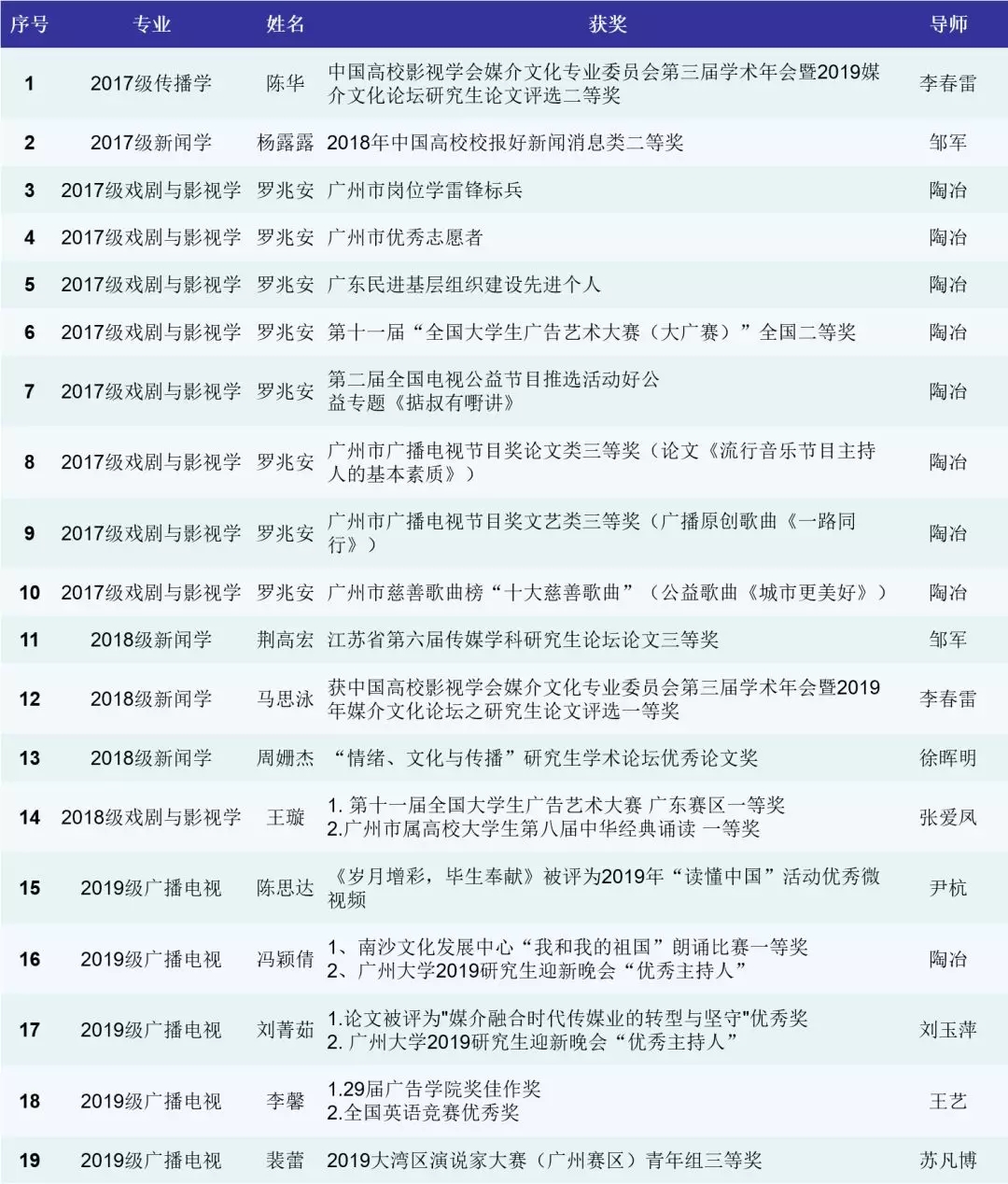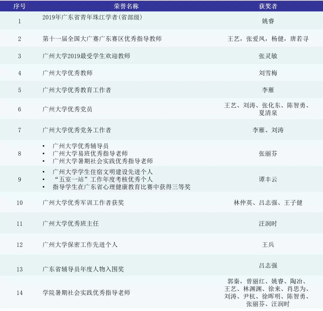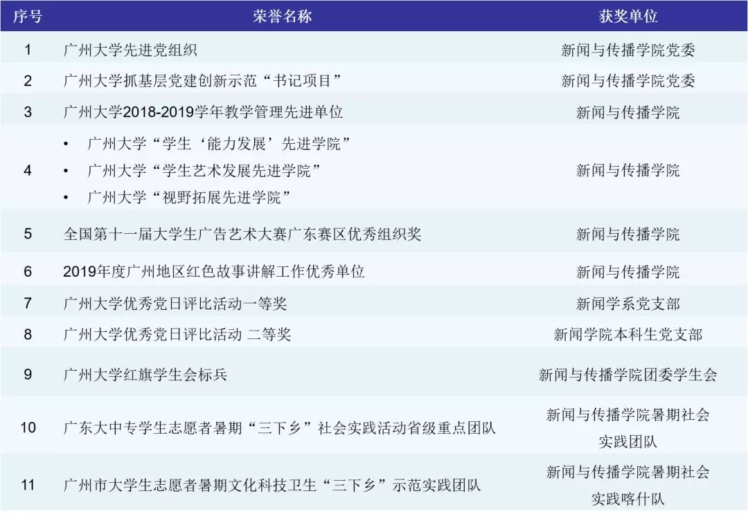 2019年,学院全面贯彻习近平新时代中国特色社会主义思想,围绕立德树人的根本任务,结合学校高水平大学建设工作的要求,以部校共建新闻学院为抓手,在学院党建与思想政学院将过去一年中老师们辛勤工作所取得的各项成绩汇总成荣誉榜,希望老师们在新的一年中治工作、教学、科研、人才培养、专业建设等各方面均取得了优异成绩,硕果累累!这些成绩的取得离不开各位老师的辛勤付出和努力工作!