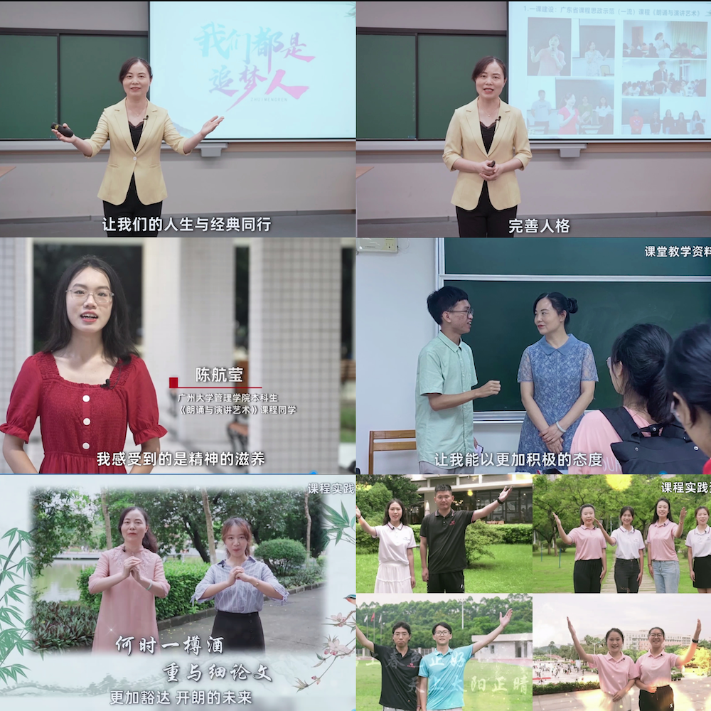 张爱凤教授主讲的《千年知己情 经典咏流传——<春日忆李白>的赏析与朗诵教学》(参与成员:陈佳玲、李臻霖)、《传诵中华经典 讲好中国故事--以通识课增强大学生的文化自信》(参与成员:陈佳玲、康莹、康鑫鑫),曾岑老师主讲的《出镜方式的创新设计理论及实践》(参与成员:刘涛、张爱凤),经个人申报、学校推荐、专家评审、公示等环节,被确定为2023年度广东省高校课程思政优秀案例(展播课),是做爱自拍