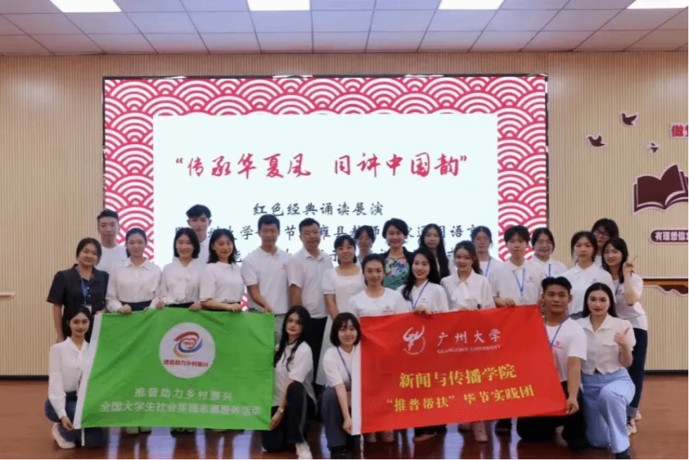 志愿服务中,实践团队锚定乡村教育薄弱点,设计详细实践方案,指导乡村学校师生诵读经典,录制视频参赛,并发挥新传专业优势,运用融媒体创新中华优秀语言文化的传播方式。